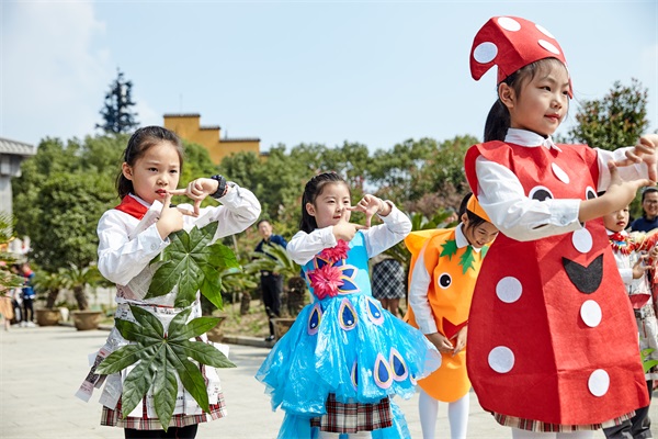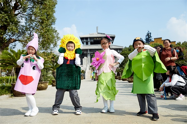 秋宜笛声,清远高亢;水宜曼舞,轻盈优美……孩子们在文化园内开展了丰富多彩的活动。本部校区二年级的小朋友们发挥自己的聪明才智,利用废旧材料,创造出各种各样植物造型的服装。出淤泥而不染的荷花,用旧玩具、卡纸做成的豌豆射手……各种鲜花、瓜果蔬菜或美丽或可爱,紧紧地吸引了小朋友们的目光。