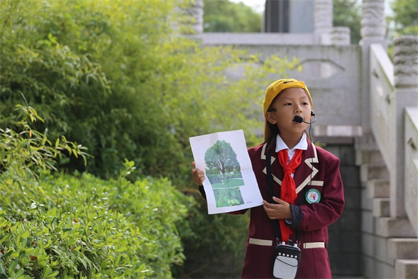 “香樟树,可以生长为成百上千的参天古木……”不远处,传来了清脆的声音。这是本部校区二年级的小小讲解员正在为大家进行细致的讲解!他们的一举手一投足,一点也不亚于专业的讲解员哦!
