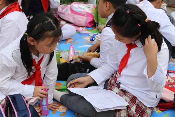 千万不要以为孩子们玩玩就结束了,他们可是带着任务来游玩的。瞧,这边秋游研学风景正好!