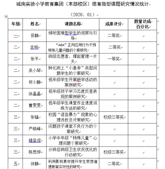 城南实验小学教育集团(本部校区)德育微型课题研究情况统计