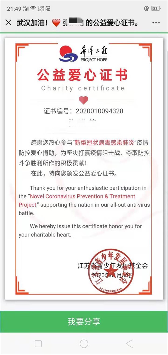 此外,他们还自主拍摄了视频,为武汉呐喊、加油!他们还积极组织网上捐款,奉献自己的爱心。