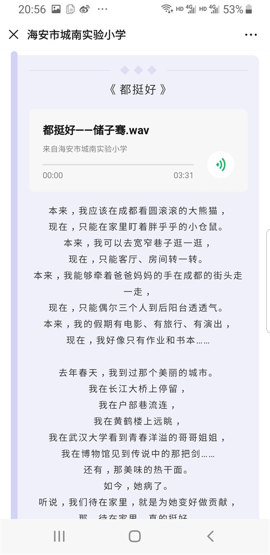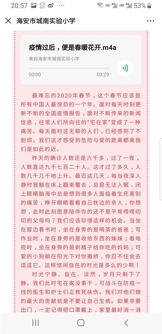 以笔助力 “声”援战疫——海安市城南实验小学教育集团防控疫情在行动