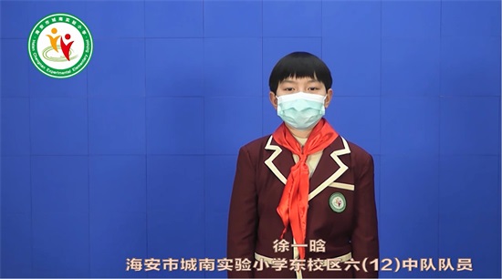 来自东校区六12中队的队员代表徐一晗结合自己的居家生活,给队员们带来自己对于这次疫情的感悟——《阳光总在风雨后》。“队员们,让我们从自身做起,没事不出门,出门戴口罩,勤洗手,做好自我防范,不给祖国添乱。在家好好学习,努力拼搏,一起迎接美好的明天!”没有华丽的词藻,不是空洞的口号,简单的号召,却是最有效的坚守。