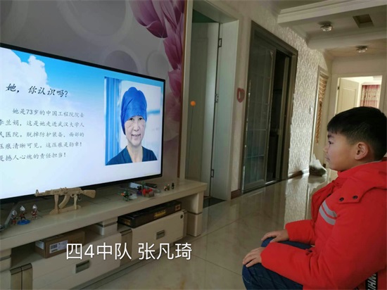 在这场没有硝烟的战场上,无数人在守护着我们的平安。队员们虽然宅在家中,却并没有荒废时光。当班会课的屏幕上闪过一帧帧图片,看到一个个熟悉的面孔时,队员们心潮澎湃。虽然宅在家中,但是队员们坚守自律,他们有的自觉学习新冠病毒知识,做小小宣传员,宣传抗疫知识;有的通过写作、画画等方式为祖国加油,为先锋助威;有的主动承担力所能及的家务劳动,孝老爱亲……战“疫”没有旁观者,每个队员都是战“疫”中的一份子,他们用自身行动表明了学习先锋的决心。