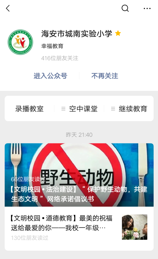 保护野生动物 共建生态文明——江苏省海安市城南实验小学举行保护野生动物线上承诺活动