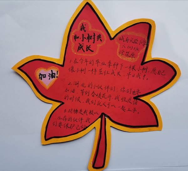 活动中,队员们用图画与文字植下了自己的心愿树。有的队员面对即将毕业的自己,写下了对未来的期许;有的针对当前仍然没有消退的疫情,写下了对湖北小伙伴的祝愿,对祖国的深深祝福;还有的用深情的笔调表达了对于人类生态和谐的共生心愿。