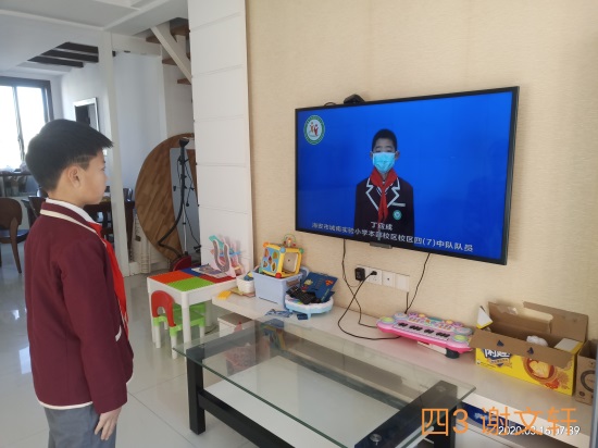 四7中队的丁应成在线上与大家分享了居家学习的感受,他借钟南山爷爷在给小朋友的回信中说的话与大家共勉:不断学习,用知识缝制铠甲,将来走上社会,各行各业都将由我们披甲上阵。