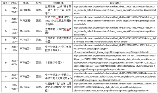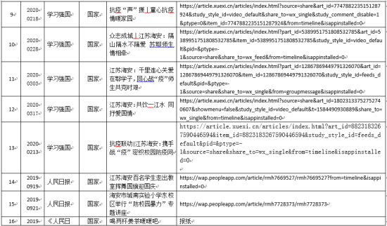 海安市城南实验小学2019年9月以来创建文明校园媒体主要宣传报道列表