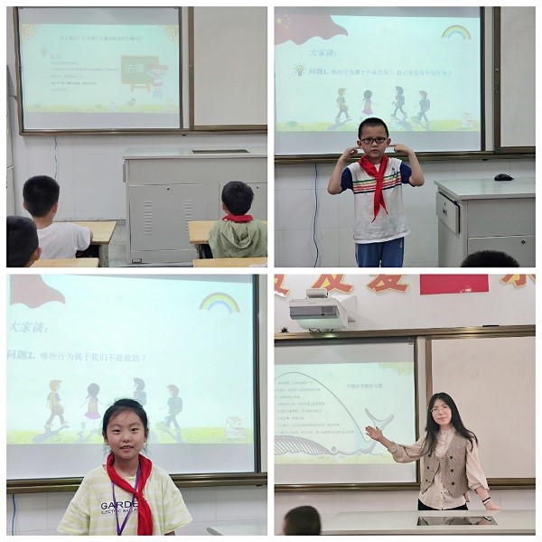 在全面推进依法治国的新时代,教育工作者更应该种好“责任田”,在学校这个大舞台上,为每一位队员扣好法治思维的第一粒扣子。在辅导员陈老师的带领下,队员们认真观看了有关《未成年人保护法》的宣传影片,更有队员受此触动,积极上台表达了自己的想法。辅导员陈老师还提醒队员们在日常生活中要遵守《中小学生日常行为规范》,摒弃坏习惯,增强自我防范意识,争做合格小学生。