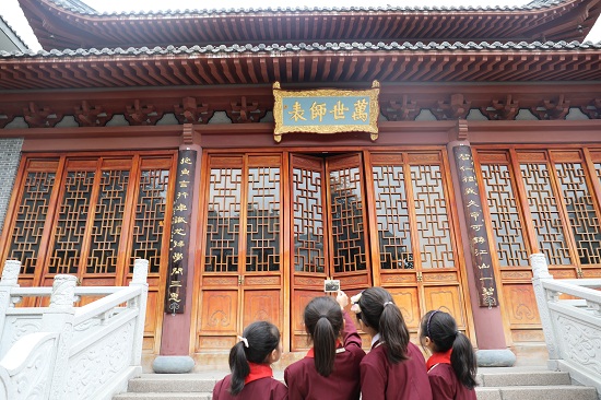 终于寻到了活动原址,队员们无比兴奋。她们带着照片来到东寺大殿前,细心比对,并在殿前拍下一张合影,和信一起寄给黄爷爷。