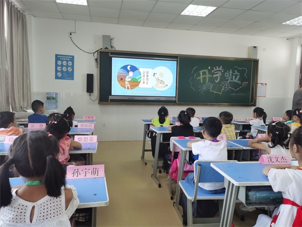 课上,集团校长许卫兵发表了热情洋溢的讲话。他首先对一年级1600名新同学和40多位新加盟的老师表示热烈的欢迎,新的学期,他对同学们提出新的要求,希望大家敢于向困难挑战,把学习放在首位,人人争做文明代言人,做德智体美劳全面发展的孩子。