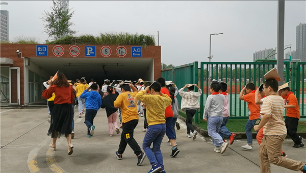上午10:00整,随着一声防空警报响起,所有参与演练的师生绷紧了神经。学生在第一时间排成两路纵队,在正、副班主任的引导下,按照规定线路,迅速向人防工程——地下车库疏散。在疏散过程中,师生们严格执行“七个不准”的演练要求,到达安全集结地后,每班成四路纵队蹲下,清点人数,向总指挥汇报演练疏散情况。整个过程规范有序、紧张而不乱,无推挤踩踏事故发生。