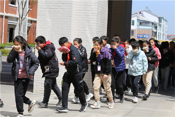3月26日中午,随着警报声响起,疏散演练正式开始,同学们在老师的带领下,用毛巾捂住口鼻,低头弯腰,有秩序、迅速地撤离教学楼,安全到达集结地点。各班主任马上清点人数,并逐级进行汇报。演练程序规范有序,做到了零意外,零事故。