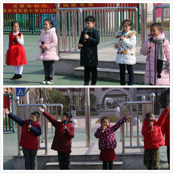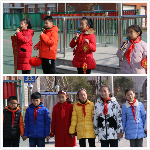 朱建安和吴心怡演唱的歌曲喜气洋洋,是在庆祝我们又欢聚到城南实小这个大家庭呢。