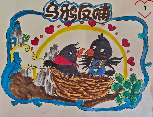 “乌鸦反哺”的故事让我们感动,小朋友们制作成一幅连环画。