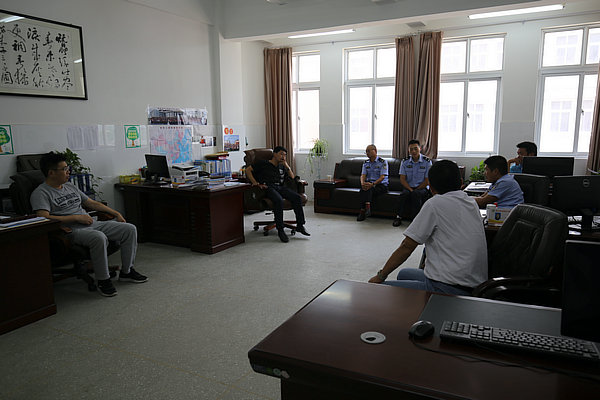 校长许卫兵向李指导介绍了学校初步设计的几个方案,交警们就几个方案的利弊进行了分析,根据学校周边的道路、红绿灯等实际交通情况提出了自己的意见。最后,学校和交警部门从确保上放学有序、保证学生安全角度敲定了上放学线路及护学岗设置方案。学校将通过家长会、QQ群及微信公众平台告知家长该方案。
