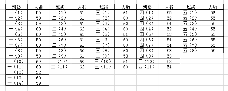 城南实验小学各班人数