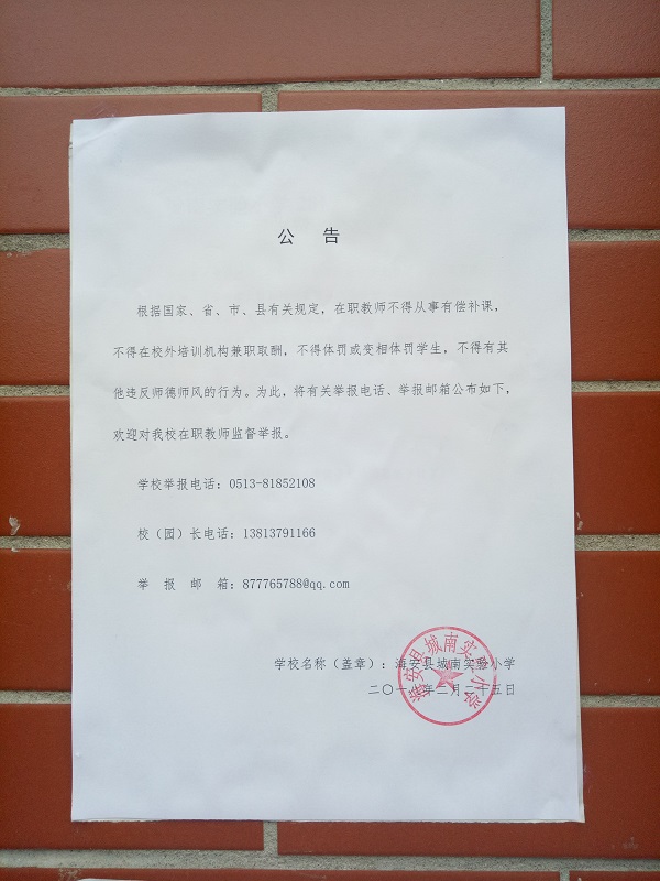 城南实验小学教师师德师风公告