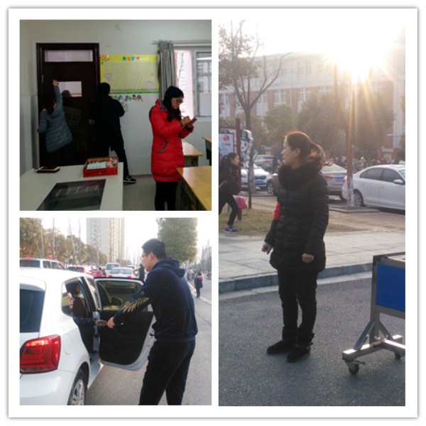 25日下午130,是学生报到时间,110学校中层管理人员就配戴“红袖套”站在学校北门和东门迎接学生的到来,带着微笑和问候为学生打开车门,拉着学生的手将学生带至安全地带。