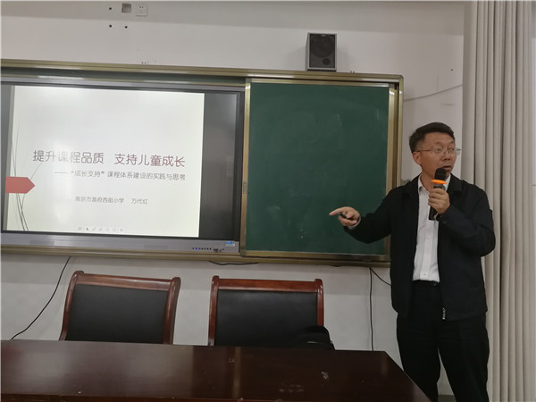 接着,三所学校交流了各自的办学思想和课程建设。天津路小学陈建梅主任介绍了学校围绕多彩运河开展了系列综合实践活动的课程研究成果;城南实小教学科研处主任周正娟分享了学校办学五年多来幸福教育办学特色的建构、实施等;游府西街吴玉国副校长介绍了学校的儿童成长支持课程建设和项目化学习报告。三所学校的介绍内容丰富、各具特色,让与会代表受益匪浅。来自“吴玉国名师工作室”的张晞、席爱勇、毛文波、万兆荣等老师给大家介绍了工作室在结构化学习中的最新研究成果。