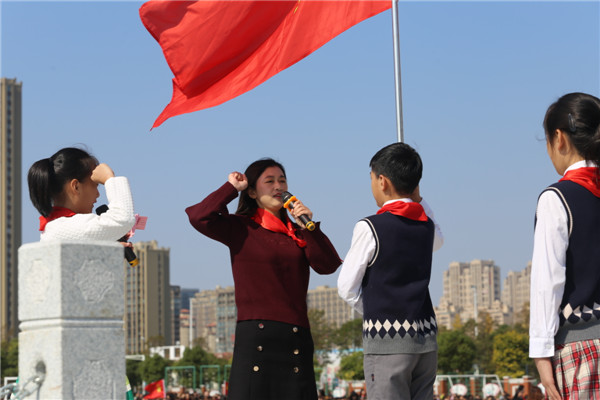 她组织开展了“争当光荣升旗手”活动,由中队内竞选,产生每周一的光荣升旗手和周内光荣升旗手,在周一的升旗仪式上集体亮相,并给每位光荣升旗手配发了一枚徽章,同时在每周一早晨利用学校的电子大屏滚动播放本周光荣升旗手的照片和姓名。2018年,学校组建了一支66人的国旗护卫队,集中训练,统一着装。每周一升旗仪式时,由护旗队的队员们护送国旗出场,庄重肃穆,充满仪式感和认同感。