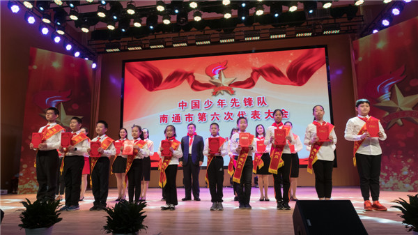 队歌嘹亮,队旗飘扬,星星火炬,永放光芒。10月18日,南通市第六次少代会胜利召开。大会对南通市十佳少先队辅导员、十佳少先队员进行了表彰,城南实小康缪燕主任荣获“南通市十佳少先队辅导员”的光荣称号,市委书记陆志鹏亲自颁奖、合影留念。