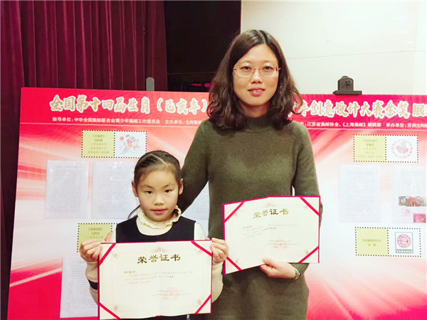 本次大赛,经过全国各地区初选后,报送至大赛组委会参评的学生作品共有1848幅,经过层层评选,最后评出金奖11名,银奖57名,铜奖115名。其中,城南实小二年级陈佑菡同学设计的作品《中国梦》脱颖而出,获全国小学组金奖,这也是江苏省唯一的金奖。同时,许志群老师获得优秀辅导老师奖。