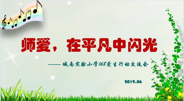 陶行知先生有言:“没有爱就没有教育”。从事这份爱的事业,城南实小的老师们教书育人、关爱学生,守护成长……在为人师者的日常里,步履匆忙,埋首躬耕,用爱心与智慧点亮孩子们的梦想,成了孩子们生命里不可或缺的重要他人。因为有爱,平常的日子变得闪亮;因为有爱,平常的举动也在闪光。168爱生,城南实验小学的老师们一直在行动!每个学年末,学校都会组织老师们进行168爱生故事的交流,让师爱在平凡中闪光,让“168”爱生行动深入人心。以爱为翼,在平常的日子里辛勤浇灌每一种向往;与爱同行,在平凡的举动中,用心点亮每一个梦想!“168”爱生行动的路上,城南实小人永不止步!
