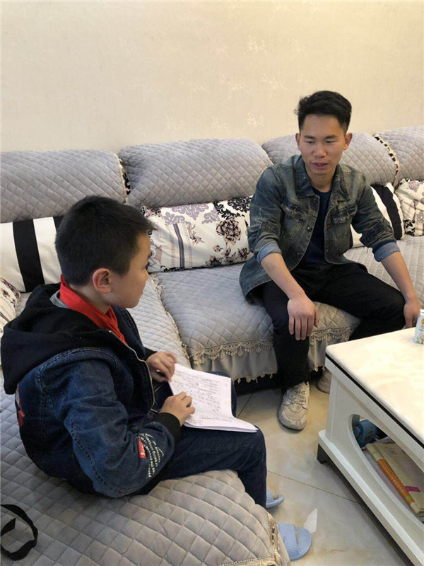 孩子对老师的突然来访显得既兴奋又紧张,小脸憋得通红!缓解紧张氛围的小窍门之一就是跟孩子一起聊聊他在家完成作业的情况,向家长汇报孩子在学校的日常表现。一18班卢老师和一21班胡老师都是经验丰富的老班主任,这是她们对家访的共识。瞧,胡老师正在耐心地一遍又一遍地指导孩子攻克他的薄弱环节!卢老师则从提醒孩子正确的书写姿势开始,亲切自然地开始了与孩子和家长的沟通。