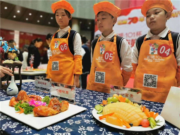 本次厨艺大赛的主题为“壮丽70年,圆梦新时代”。比赛前,指导老师带着小选手们学习观摩,设计创意,刻苦练习,付出了许多努力。功夫不负有心人,经过近一个月的训练,小厨师们越来越得心应手,娴熟老练。