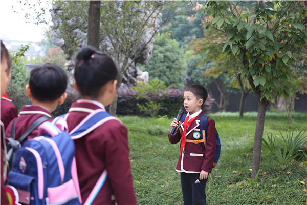 “香樟树,可以生长为成百上千的参天古木……”不远处,传来了清脆的声音。这是本部校区二年级的小小讲解员正在为大家进行细致的讲解!他们的一举手一投足,一点也不亚于专业的讲解员哦!