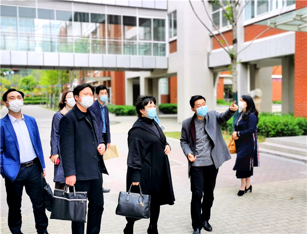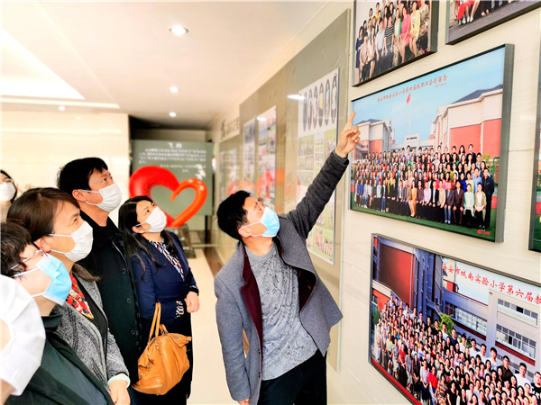 许卫兵校长陪同港闸区教育代表团一行参观了校园。“六年教师集体合影”“首届毕业生纪念雕塑”等文化展角引得来访者们驻足欣赏,大家从一面面墙壁和一处处景观中感受城南“幸福”的温度。