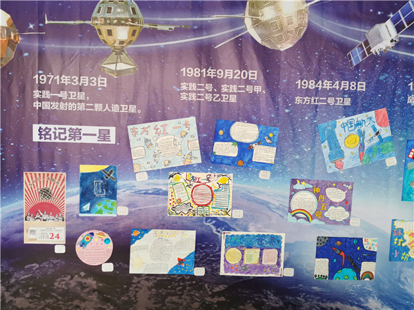 他们还积极为“东方红一号”、“神舟五号”、“天宫一号”等航天器设计名片、制作海报,创想中国航天未来,设计新型航天器,撰写“我的航天梦”主题征文。一份份作品在孩子们笔下诞生,一颗颗火热的航天心被激活。