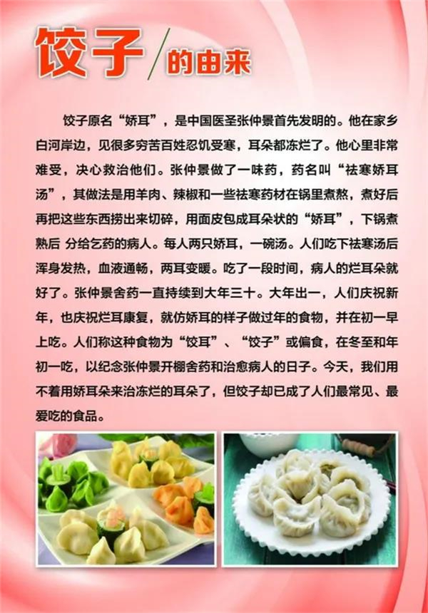 饺子是我国医圣张仲景发明的,距今已有一千八百多年的历史了,作为中华传统经典美食,饺子自古就寓意着“吉祥”与“团圆”,是深受中国人民喜爱的传统特色食品。临近毕业,一起包饺子,将劳动之乐、同学之情包进喷香的饺子了,多好啊!
