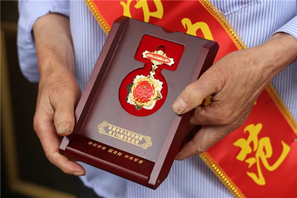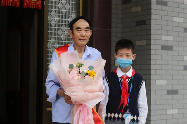 来到徐爷爷家,队员代表们怀着无比激动的心情给徐爷爷献上鲜花,徐爷爷亲切地与队员们交谈,讲述自己的成长故事。通过访谈,队员们了解到2019年徐爷爷曾获得习近平总书记亲自颁发的“庆祝中华人民共和国成立70周年纪念章”。