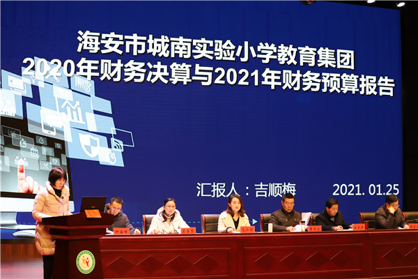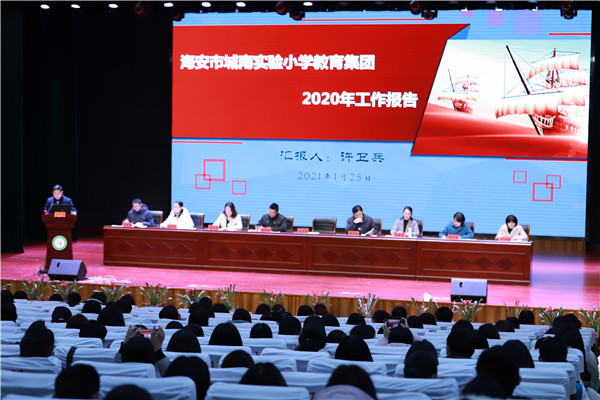1月25日,海安市城南实验小学教育集团第八届教职工大会暨一届三次教代会在学校本部幸福剧场隆重召开。大会由集团副校长吴雪琴主持,400余名教职工参加大会。