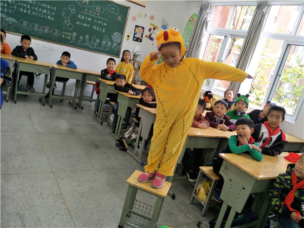 部编本二年级语文上册的这套教材中,第五单元是三则寓言故事,围绕这三则寓言故事,每班各小组挑选其中一个故事,利用课余时间,进行角色扮演。孩子们精心地准备各种道具、服装,不少小朋友在故事中还加入了自己的语言和动作,使得故事更加得精彩生动,引得台下的小观众们纷纷鼓掌叫好。