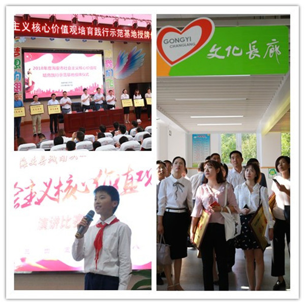 2018年,在海安创建全国文明城市,城南实验小学创建全国文明校园的“双创”活动中,全校5000名师生“总动员”,4600个家庭万名家长手拉手,全身心开展“创文”行动,“美德少年一条街”“幸福公益长廊”“争当文明礼仪星”等主题长廊浓郁了“创文”氛围,“红领巾研学寻访”“主题队会”“手抄报比赛”“征文演讲比赛”等丰富多彩、富有成效的活动汇聚成强大的文明实践洪流。300多场“创文”志愿服务更是通过学校、家庭、班级等多渠道立体展开,城南实小教育集团的老师、学生、家长的身影活跃于海安大街小巷,相关公益行动被《江苏教育报》报道,学校获评海安市首批核心价值观培育践行示范基地,在全国文明城市随机暗访、现场考察以及新时代文明实践中心建设试点工作中,我校作为重点准备单位,多次全市放样。