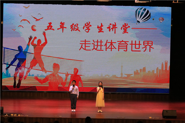 5月15日中午,城南实小五年级部全体师生齐聚幸福剧场举行“走进体育世界”学生讲堂活动,聆听一个个小讲师讲体育。