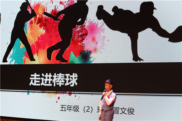 小讲师们围绕大家最感兴趣的足球、乒乓球、篮球、棒球、体育明星等组织讲稿,精心制作PPT,有的讲棒球的起源,有的讲篮球的规则和发展,有的讲自己心中的奥运英雄,可谓是各有各的见解,各有各的故事。观众们也是听得聚精会神,掌声迭起。活动最后学校领导代表为获奖学生颁奖。