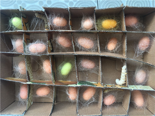 养蚕的过程并不是一帆风顺的。蚕生病了,蚕不吃桑叶怎么办?回家向爷爷奶奶请教,上网向电脑请教。在近一个月的盼望中,蚕儿们终于“上山了”。一个个椭圆的形的茧子,奇迹般地诞生!