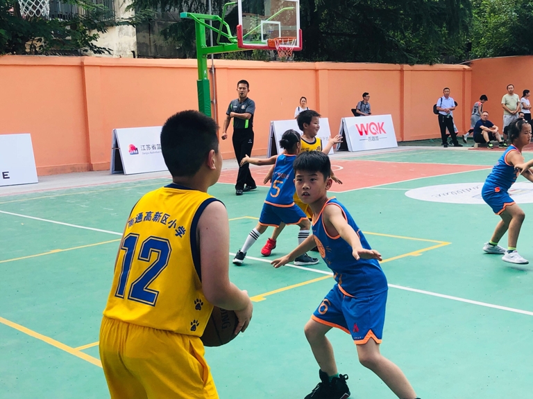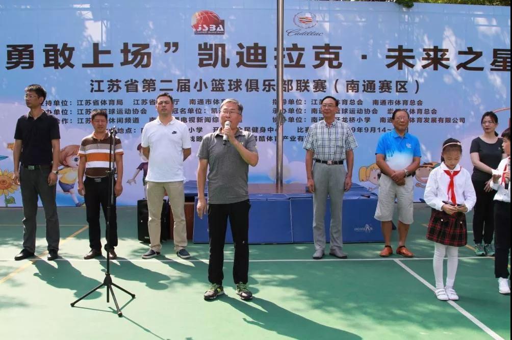 借助2019年国际男篮世界杯的东风,“未来之星”江苏省第二届小篮球俱乐部联赛(南通赛区)火热上演。该项赛事是江苏篮球协会响应国家全民健身号召,适应少年儿童的身心发展需求,储备篮球后备人才,为青少年儿童量身定制的赛事,被江苏省体育总会列入十大江苏品牌赛事。 南通赛区开幕式于9月14日上午9时在跃龙桥小学隆重举行。在裁判员、运动员举行了庄严的宣誓仪式之后,南通市篮球协会主席傅民先生致辞,南通市体育局副局长严少标宣布比赛开幕。