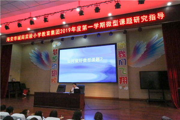 924日下午,城南实验小学教育集团的全体老师齐聚报告厅,许卫兵校长分别从理念、行动和意义三个方面阐述了“什么是微型课题”“如何做微型课题”以及“为何做微型课题”,教师从理念上明晰了课题研究的基本要素:具体的研究对象、现实的触动描述、鲜明的宗旨表达、清晰的程序勾勒、大致的成果预期等。在此基础上,他还对我校上学期194项微型课题成果进行了深入点评,大家在聆听中领悟到如何在实践中思考,在思考中实践,让自己的日常教学研究走向深入、走向开阔。这次培训为教师接下来的课题申报指引了方向,拓宽了思路。