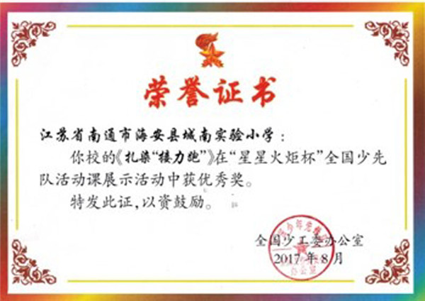日前,从共青团江苏省委、江苏省教育厅、少先队江苏省工作委员会传来喜讯——海安市城南实验小学少先队大队被评为“江苏省优秀少先队大队”。这是在省市县层层遴选的基础上获得的一项殊荣。这项荣誉的取得是对城南实小建校六年来少先队工作的充分肯定和褒奖。