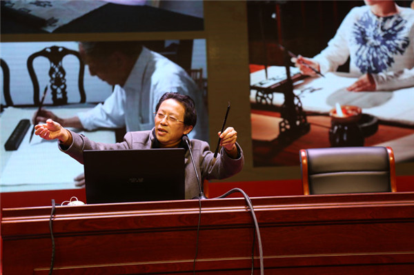 这次讲座结合四年级学生软笔书法、硬笔书法的学习情况,以“书法的临摹与书写的技巧”为主题展开。