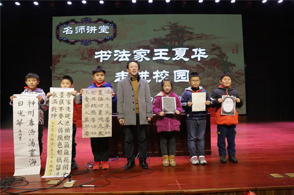 为进一步传承和发扬中华书法文化,激发学生对中华传统文化和语言文字的热爱之情,12月25日下午,著名书法家王夏华走进海安市城南实验小学,为本部四年级的师生带来了一场书法艺术盛宴。
