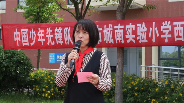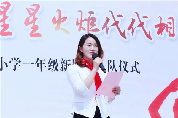 随后,学校少工委主任许卫兵,副主任高小娣、罗维旭为新成立的中队授旗。副校长高小娣宣读聘请中队辅导员的决定,并为辅导员老师颁发聘书。校长许卫兵在致辞中希望队员们树立远大理想,勤奋学习,勇于创新,永远听党话,时刻跟党走,争做新时代好队员。一年级部周丽娟主任带领队员们一起呼号。