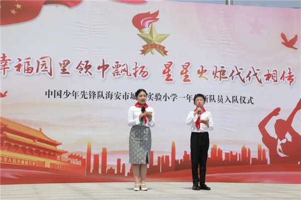 幸福园里领巾飘扬 星星火炬代代相传——海安市城南实验小学举行2020年一年级新队员入队仪式