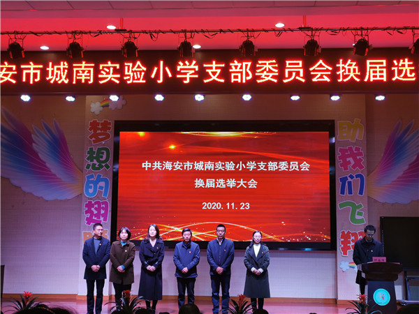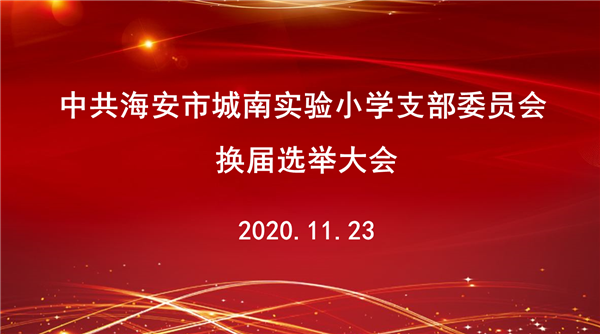 11月23日下午,中共海安市城南实验小学党支部在报告厅召开党员大会,举行支部换届选举。海安市委教育工委书记、教体局党组书记、局长章晓丽同志出席了会议。