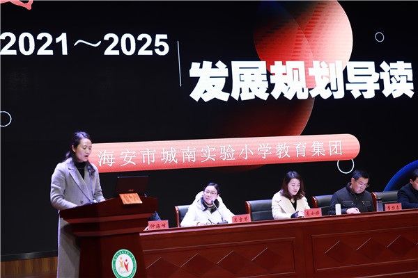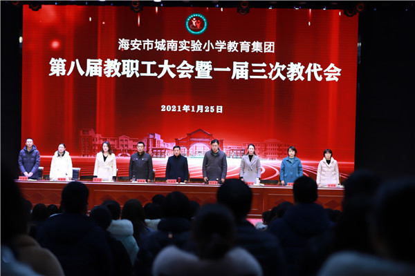 125日,海安市城南实验小学教育集团第八届教职工大会暨一届三次教代会在学校本部幸福剧场隆重召开。大会由集团副校长吴雪琴主持,400余名教职工参加大会。